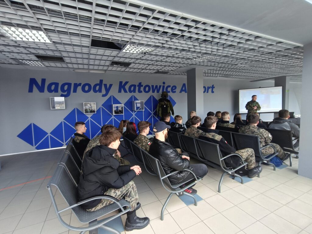 W dniu 27.03.2026 r. uczniowie klasy I c o profilu Straży Granicznej wzięli udział w wycieczce edukacyjnej na lotnisko – Port Lotniczy Katowice w Pyrzowicach. Podczas wizyty zostali oprowadzeni przez funkcjonariuszy Straży Granicznej, którzy przybliżyli im specyfikę swojej służby oraz codzienne obowiązki.